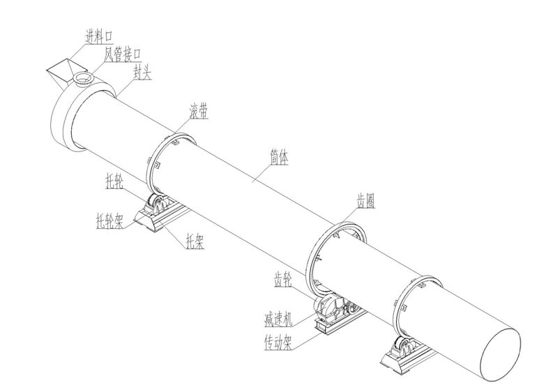 a.托架部分:托架部分包括前托架和后托架,其固定于相應(yīng)的地基上,用于支撐筒體做定位旋轉(zhuǎn)。前后托架均由托架、托輪架、托輪組成。安裝時(shí)可通過(guò)調(diào)整前后托架上兩托輪的間距,對(duì)設(shè)備高度及角度進(jìn)行調(diào)整。