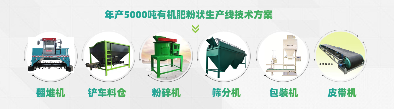 粉狀有機(jī)肥設(shè)備包括:翻拋機(jī)、鏟車料倉(cāng)、粉碎機(jī)、篩分機(jī)、自動(dòng)包裝機(jī)、皮帶輸送機(jī)。