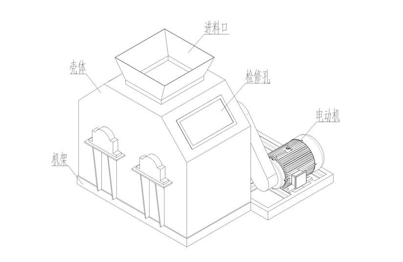 結(jié)構(gòu):本機由機架、殼體、雙破碎軸,傳動機構(gòu)等部件組合而成。